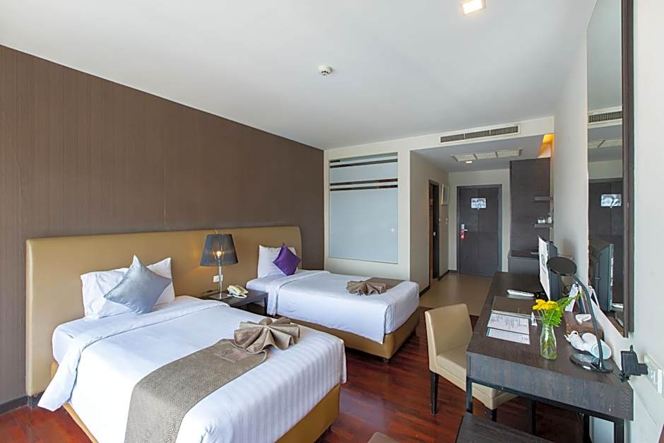 Superior room is 291 square feet and includes either a double bed 131-150 width or 2 single beds 80-130 width plus desk, satellite tv , cable tv, hairdryer, tea and coffee making facilities , safe, bathrobes, and slippers.